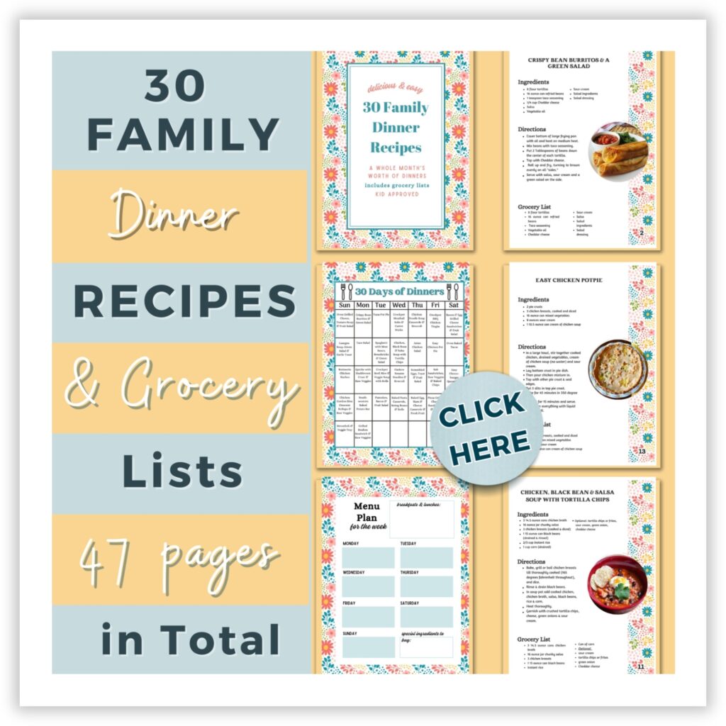 Get 30 quick and family-friendly dinners with recipes and a ready-made grocery list—making mealtime stress-free and delicious!
